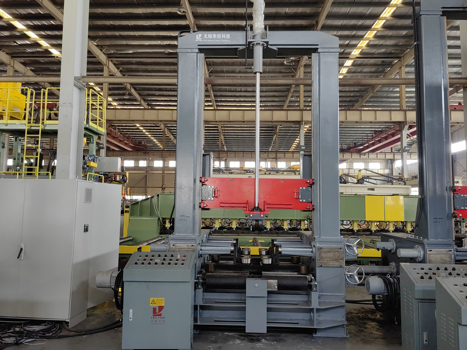 4、上部門架壓輪架導向裝置采用了三向定位導向,導向方式有效保證了在組立過程中壓滾輪的穩定性。