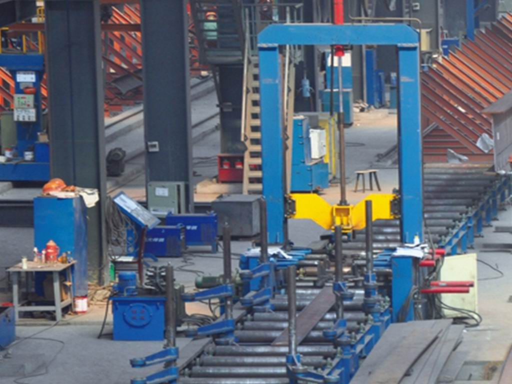 1、本組立機是用來組立點焊中、重形H型鋼的裝置。主機本體由上部門架、主機身和點焊裝置組成。