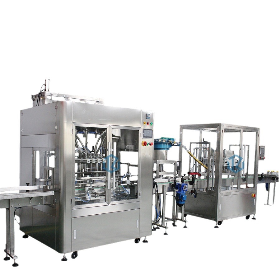 全自動(dòng)八頭液體灌裝旋蓋貼標(biāo)噴碼收瓶灌裝生產(chǎn)線