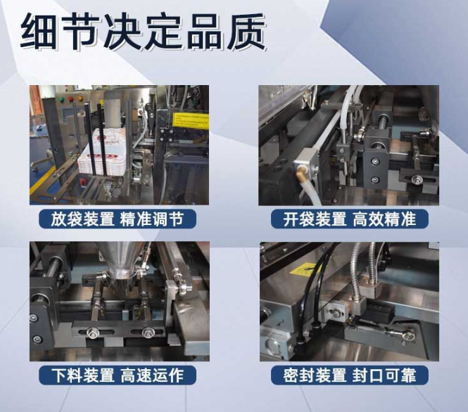 鏈斗式給袋包裝機也稱為多功能包裝機,人工投什么機器就包裝什么,不投就不包,包裝機下料屬于自由落體,所以無論從那個角度及方位都必須袋子的尺寸能夠兼容,以免出現(xiàn)卡料現(xiàn)象。